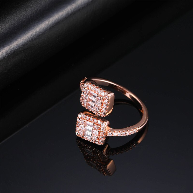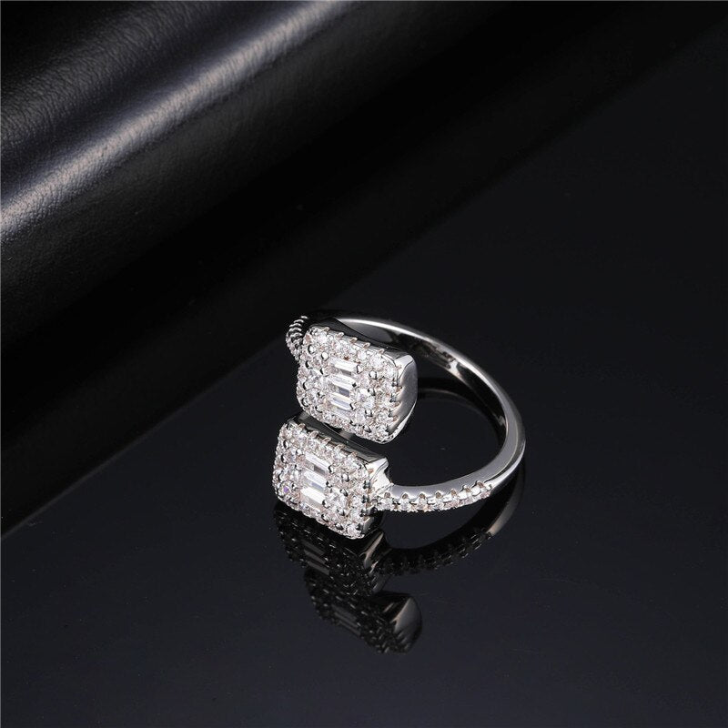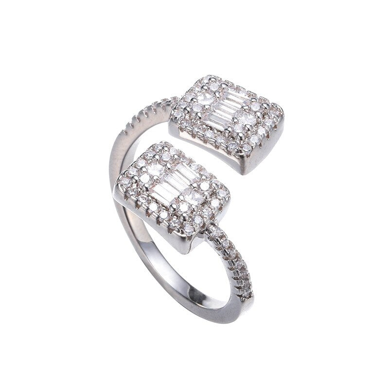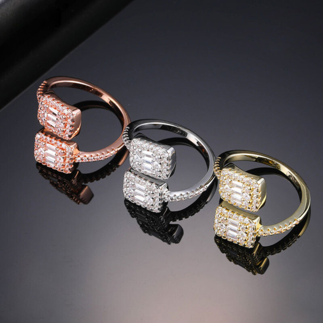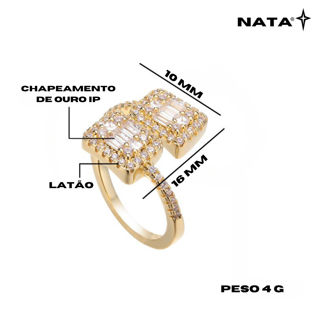 Anel Nata™ Quadrado Cravejado Duplo