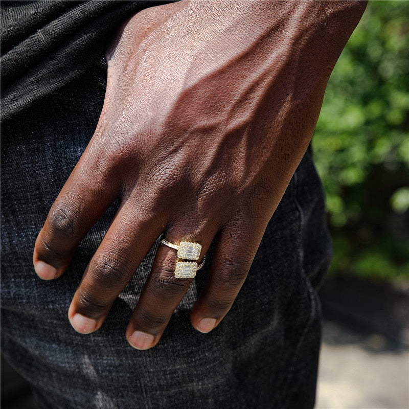 O Anel Nata™ Quadrado Cravejado Duplo é uma peça de joalheria extraordinária que combina elegância e design arrojado. Com dois quadrados cravejados com pedras preciosas, este anel exala um brilho notável e sofisticado.