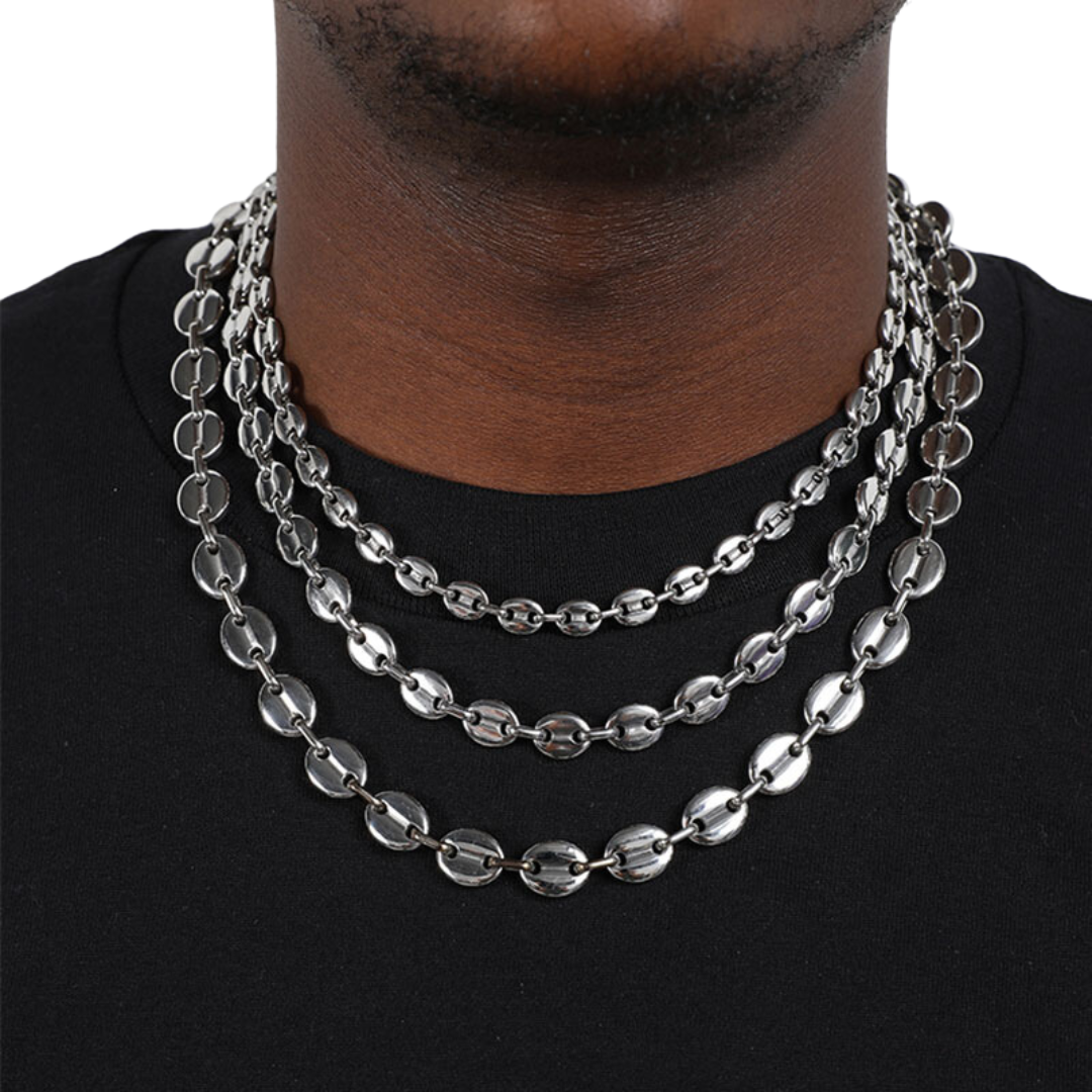 A Corrente Coffee Flat - Aço Inoxidável é uma joia que incorpora um estilo único e distintivo, evocando a elegância e o charme de elementos que lembram grãos de café. Cada elo da corrente é meticulosamente trabalhado para criar um visual que é uma expressão de estilo singular. Esta corrente é mais do que uma joia; é uma declaração de moda que adiciona um toque único e cativante ao seu visual.