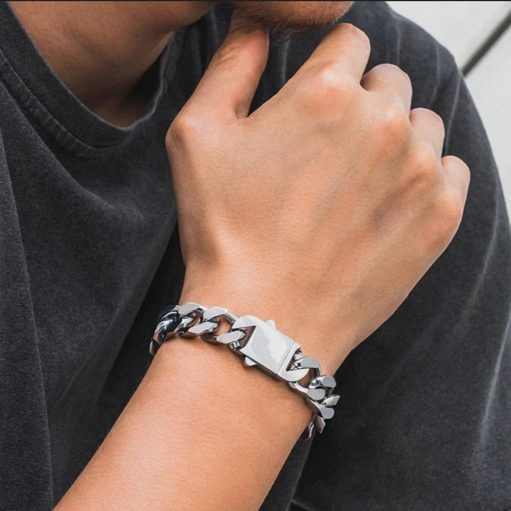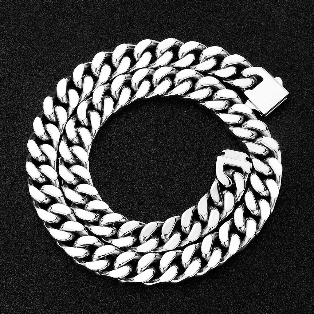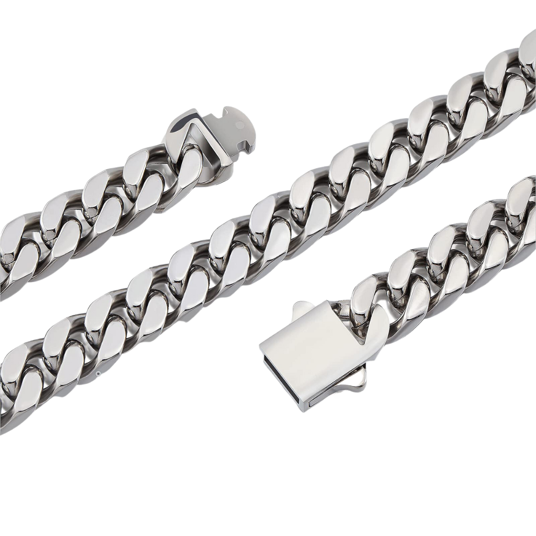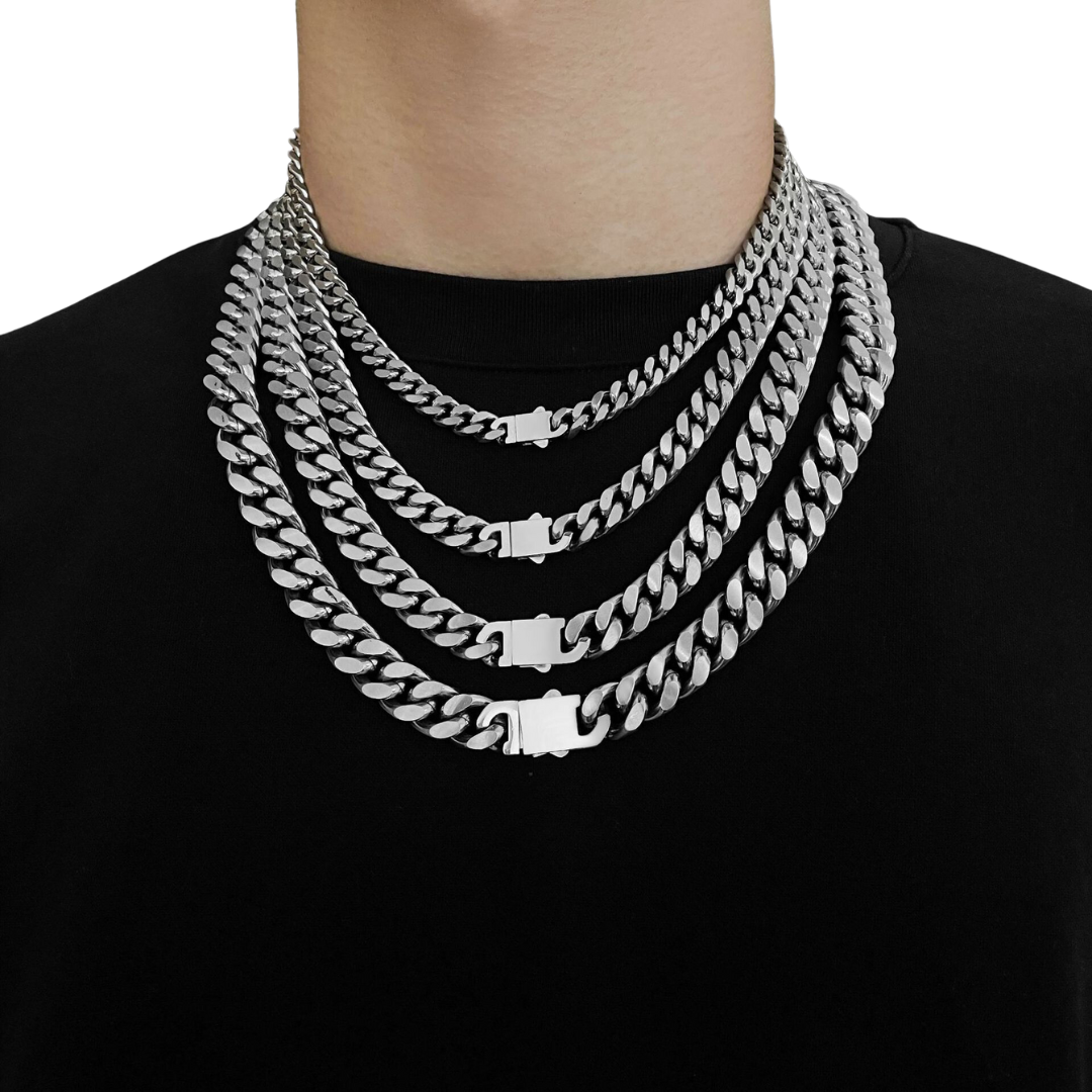 A Corrente Cubana Clássica - Aço Inoxidável é uma joia atemporal que incorpora o estilo da corrente cubana maciça clássica. Esta corrente é uma representação da moda e estilo que nunca saem de moda. Cada elo da corrente é meticulosamente trabalhado para criar uma aparência robusta e luxuosa. Além disso, oferecemos uma opção de pulseira no mesmo formato para complementar o seu visual.