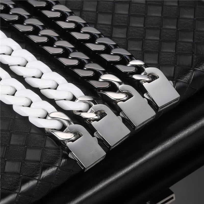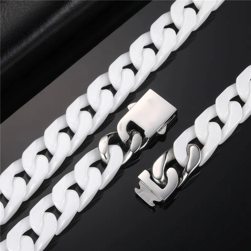A Corrente Cubana de Cerâmica é uma joia que combina o estilo clássico da corrente cubana com um toque moderno e elegante. Esta corrente apresenta os tradicionais elos cubanos, porém com um acabamento em cerâmica nas cores preto ou branco, que adiciona uma dimensão contemporânea à peça. A escolha de cores permite que você personalize seu estilo, seja com um visual mais sofisticado em preto ou uma abordagem mais clean em branco.